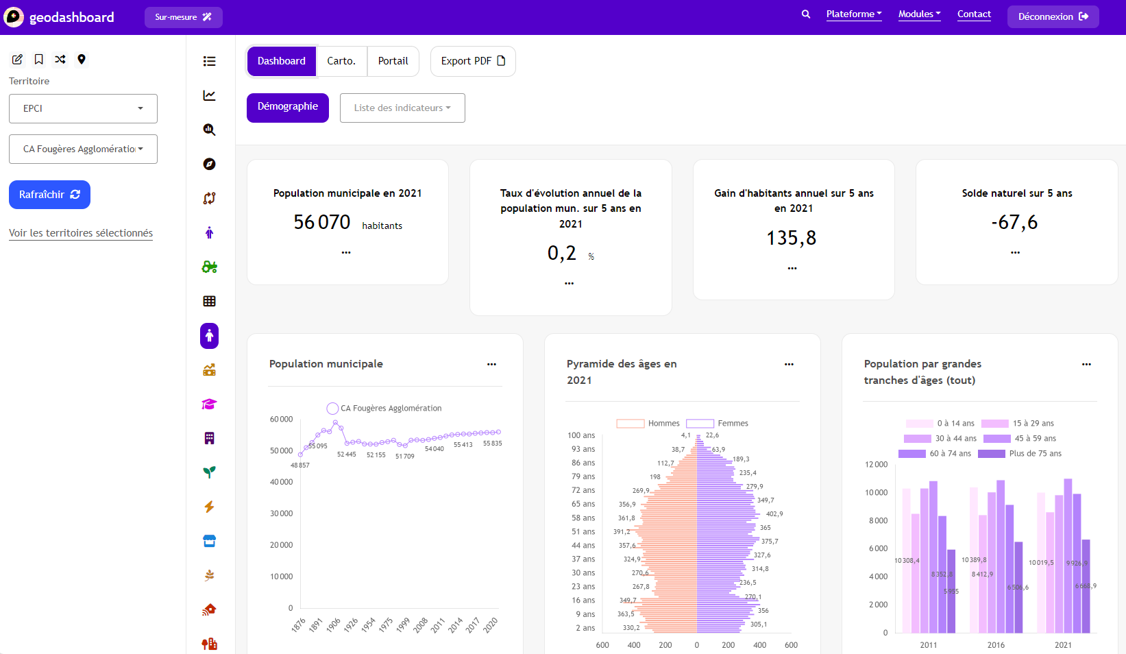 En résumé, le Geodashboard est un outil d'aide à la décision géodécisionnelle, conçu pour faciliter l'observation, la comparaison et l'analyse, au service des dynamiques territoriales.